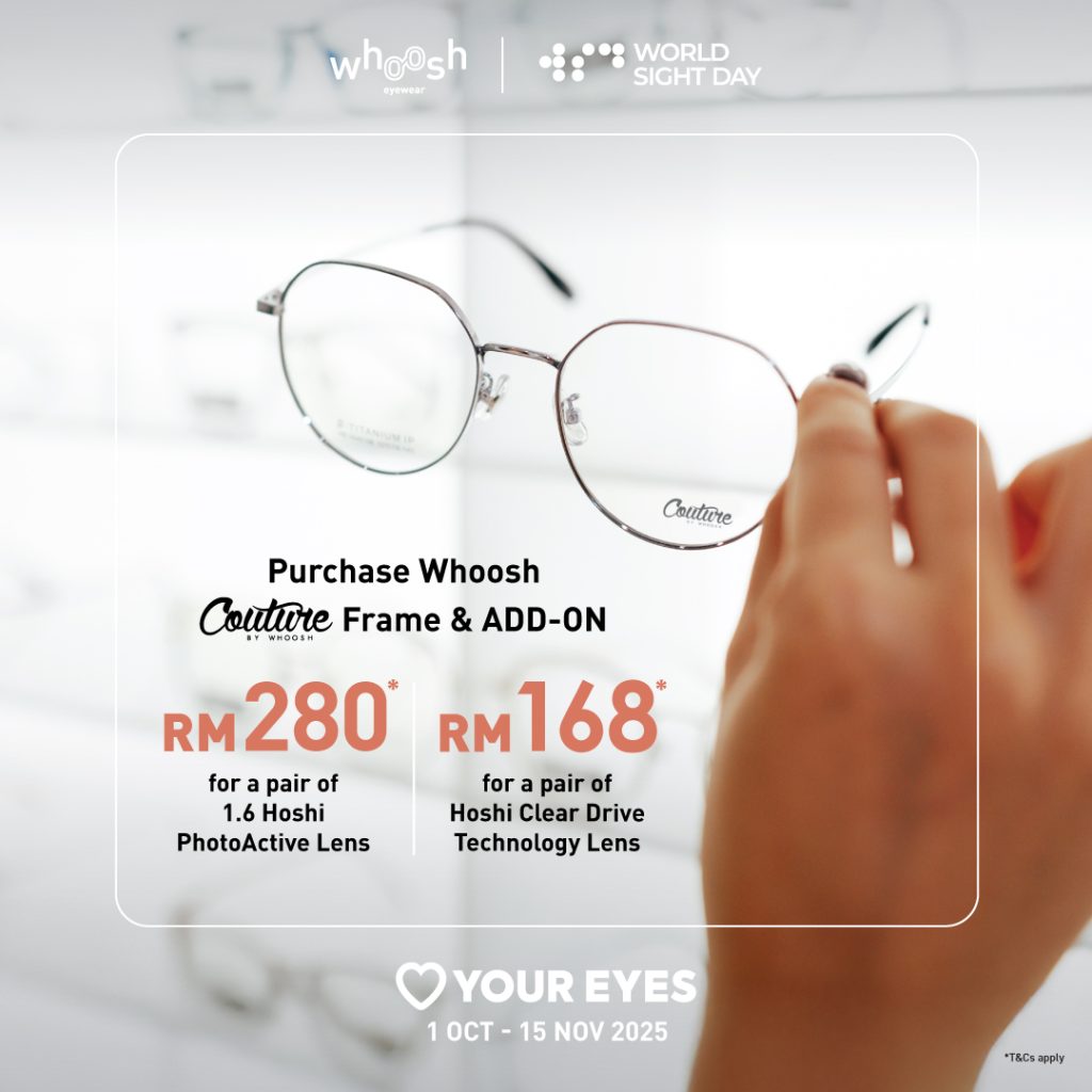 Grab our Whoosh lens upgrade offer from RM100* only. Upgrade to branded lenses is also available in store.